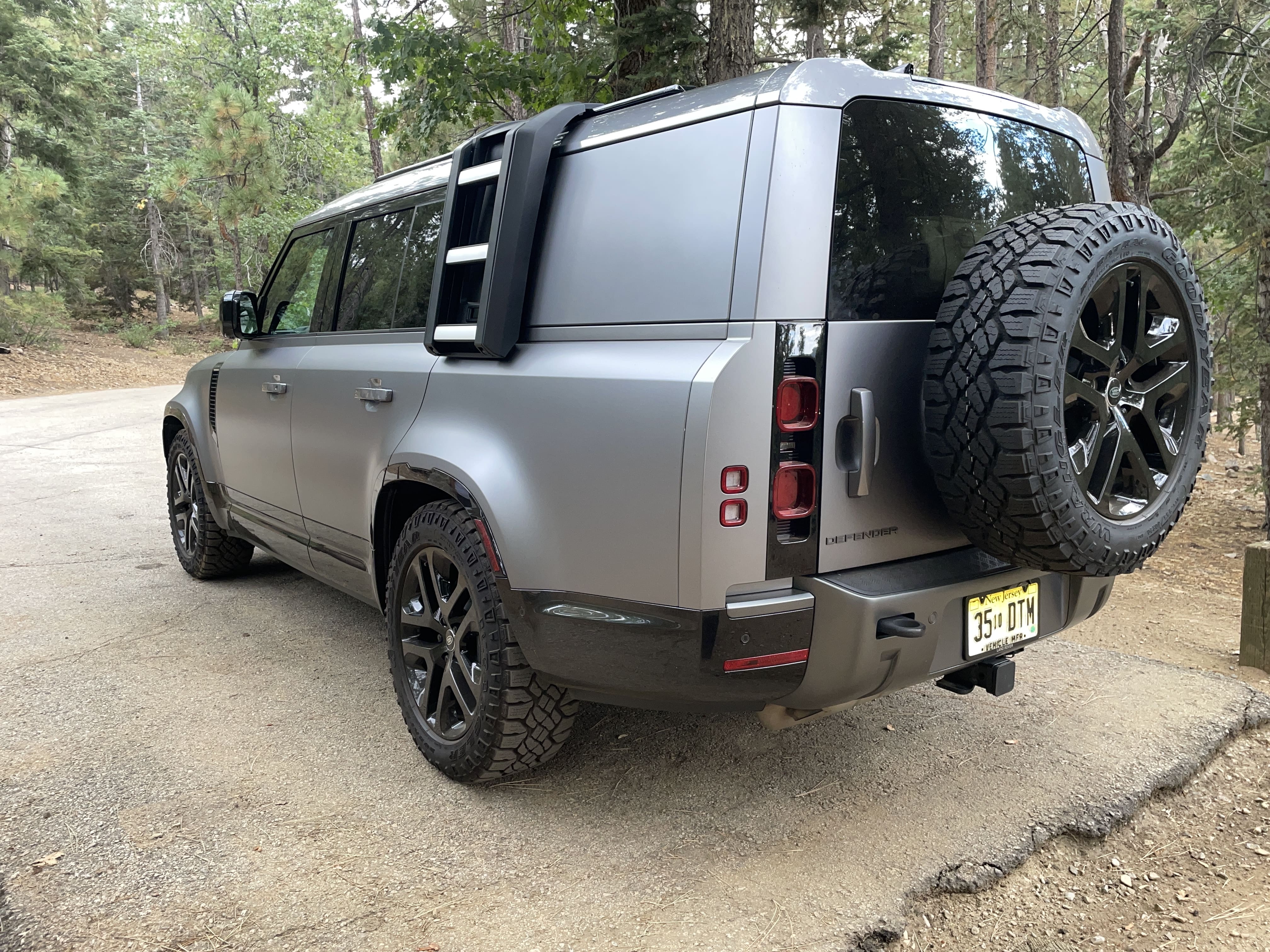 A dedicated luxury/off-road vehicle like this doesn’t come cheap. Including destination charges, pricing starts at $71,325 for the base Defender 130 S. My tester was the top-of-the-line Defender 130 Outbound which starts at $87,125. Choosing the Outbound trim replaces the rear side windows with panels, which Land Rover describes as a “robust signature panel concealing the cargo space,” deletes the third row, and adds exterior side-mounted accessories in the form of a cargo box and a foldable ladder for roof access. With over $13,000 in options including $5,500 satin protective film for the matte Eiger Grey exterior paint, $1,250 off-road package and a $1,400 premium package, my Defender 130 Outbound stickered at $100,493.