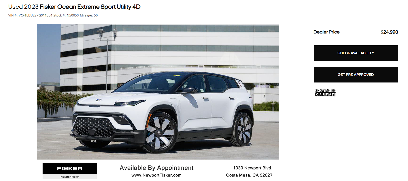 A Fisker dealer that somehow still exists has over 20 Oceans in its inventory, many of them with less than 100 miles.