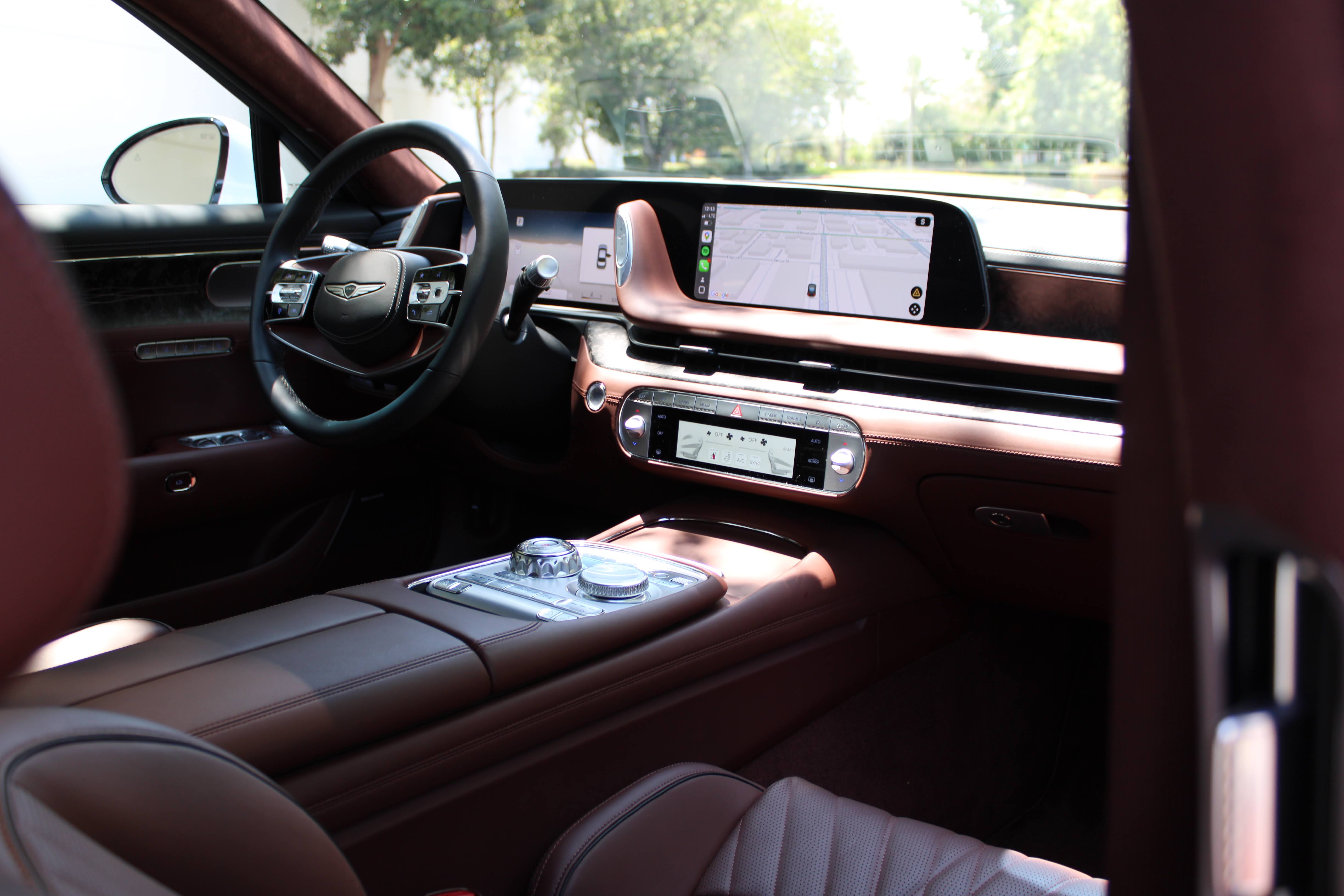 Inside the G90 gets even better. The interior is gorgeous and well made. The first thing you’ll notice about it is the color. My tester was finished in a warm brown Genesis calls Bordeaux which can come off as either Chocolate-like or with a Burgandy-ish hue. This was accented by a matte colored wood trim.