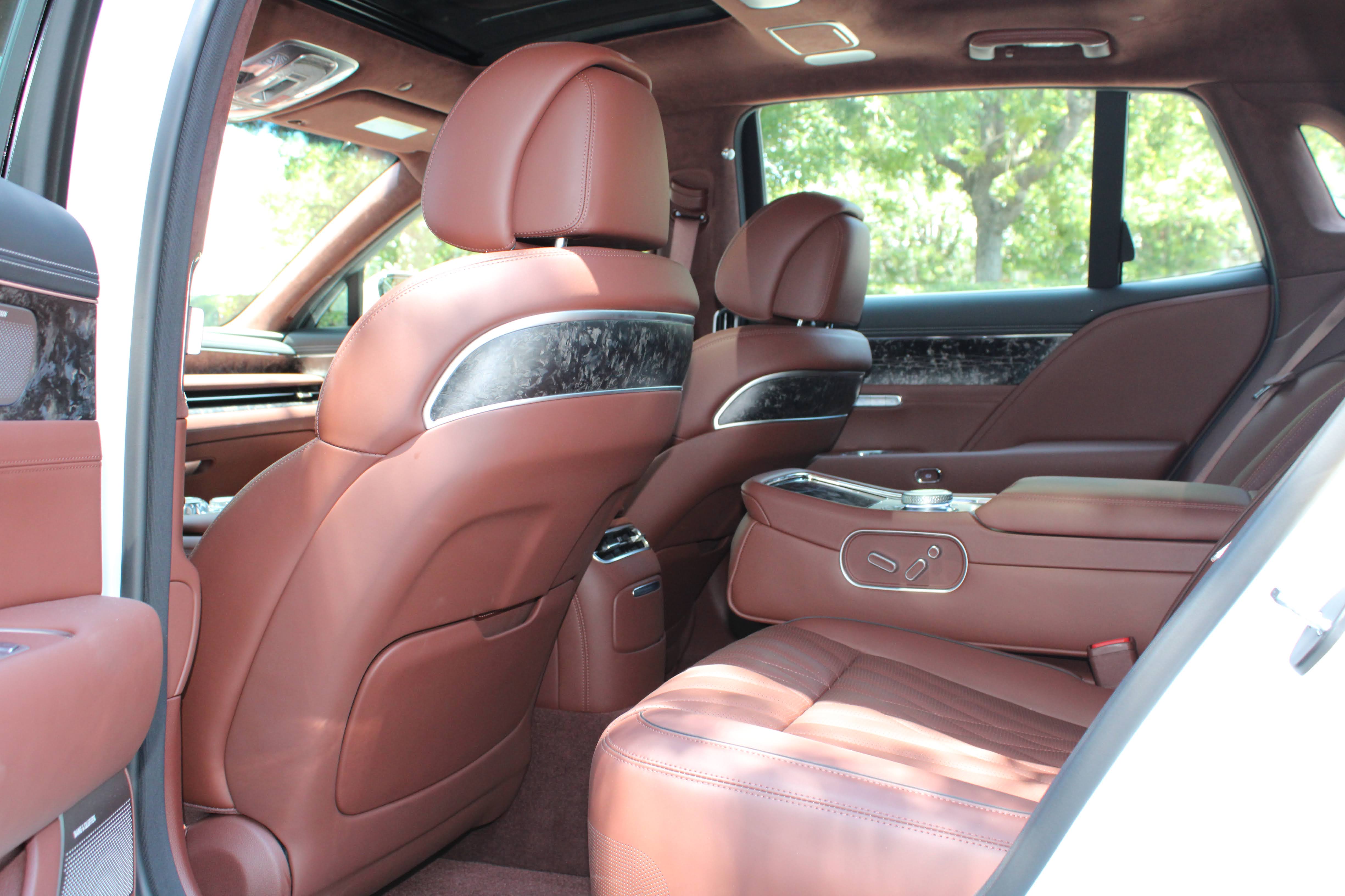 The second most expensive is the BMW 7 Series. Equipped like the G90, you’d have to spend $116,125 for a 7. Just to get a similar interior color to the G90 is $1,850 for a color BMW calls Tartufo. Another $4,500 is required to get the rear seats like the G90: $3,000 for a luxury rear seating package, $500 for cooled front seats and another $1,000 for massaging. Four wheel steering on the 7 Series is another $1,150 and it’s $4,800 for a sound system similar to the G90’s Bang & Olufsen sound system; BMW uses a Bowers & Wilkins surround sound system.