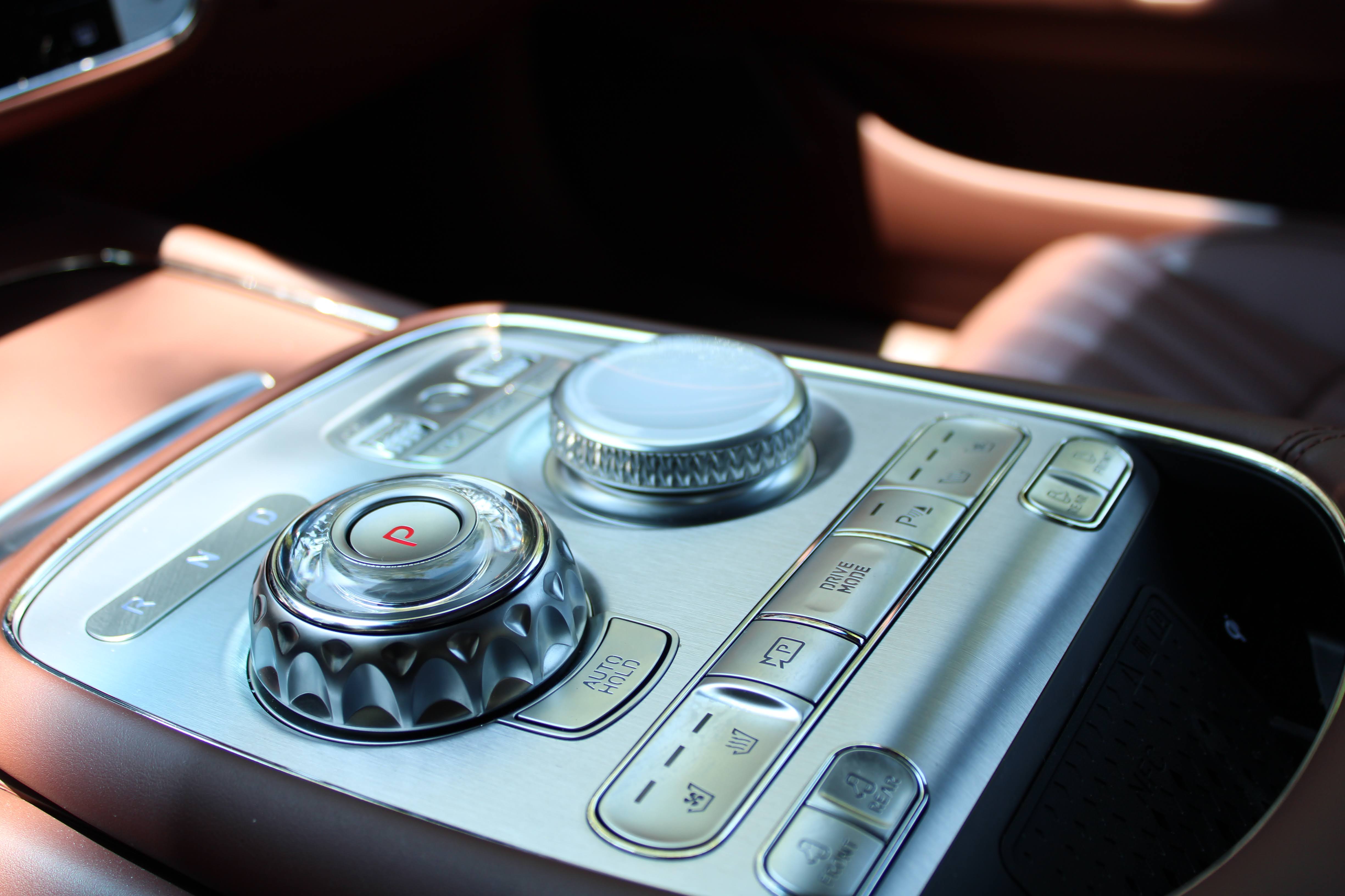 In the G90, there’s actual buttons and controls. Set low in the dash is one central area that houses controls for the climate as well as navigation and audio system shortcuts. An area just ahead of the center armrest houses more controls with knobs for audio volume and radio tuning as well as dials for the gear selector and a rorty dial with a built in touch pad on top of it that controls the infotainment screen. It’s all very functional and easy to use.