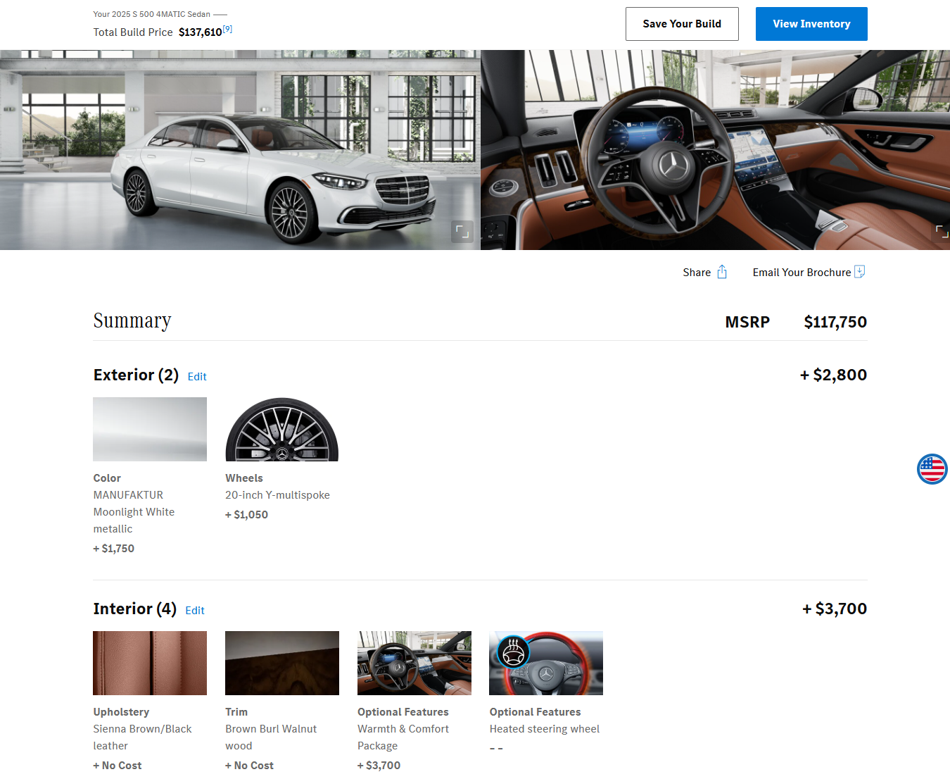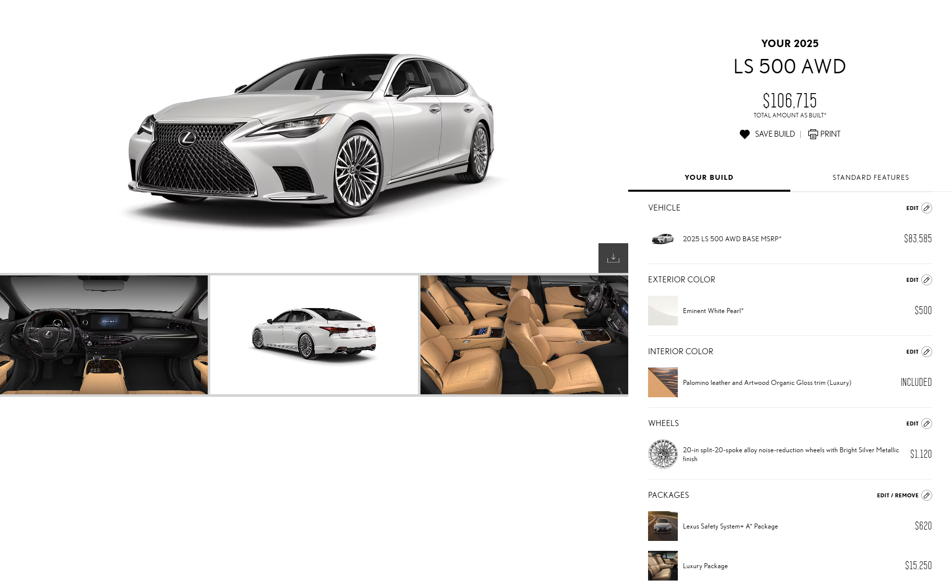 I went and built out a few of the G90’s competitors and similarly specced them in both equipment and color. The most expensive is the Mercedes S 500 at $137,619. Just to get the white exterior paint and 20-inch wheels is $2,800 ($1,750 for the paint and $1,050 for the wheels). And you can’t just simply choose the brown interior. It requires a $3,700 Warmth & Comfort Package. Another $12,210 came from other features that the G90 comes standard with like rear wheel steering ($1,300) and Mercedes’ E-Active Body Control suspension system ($6,500).